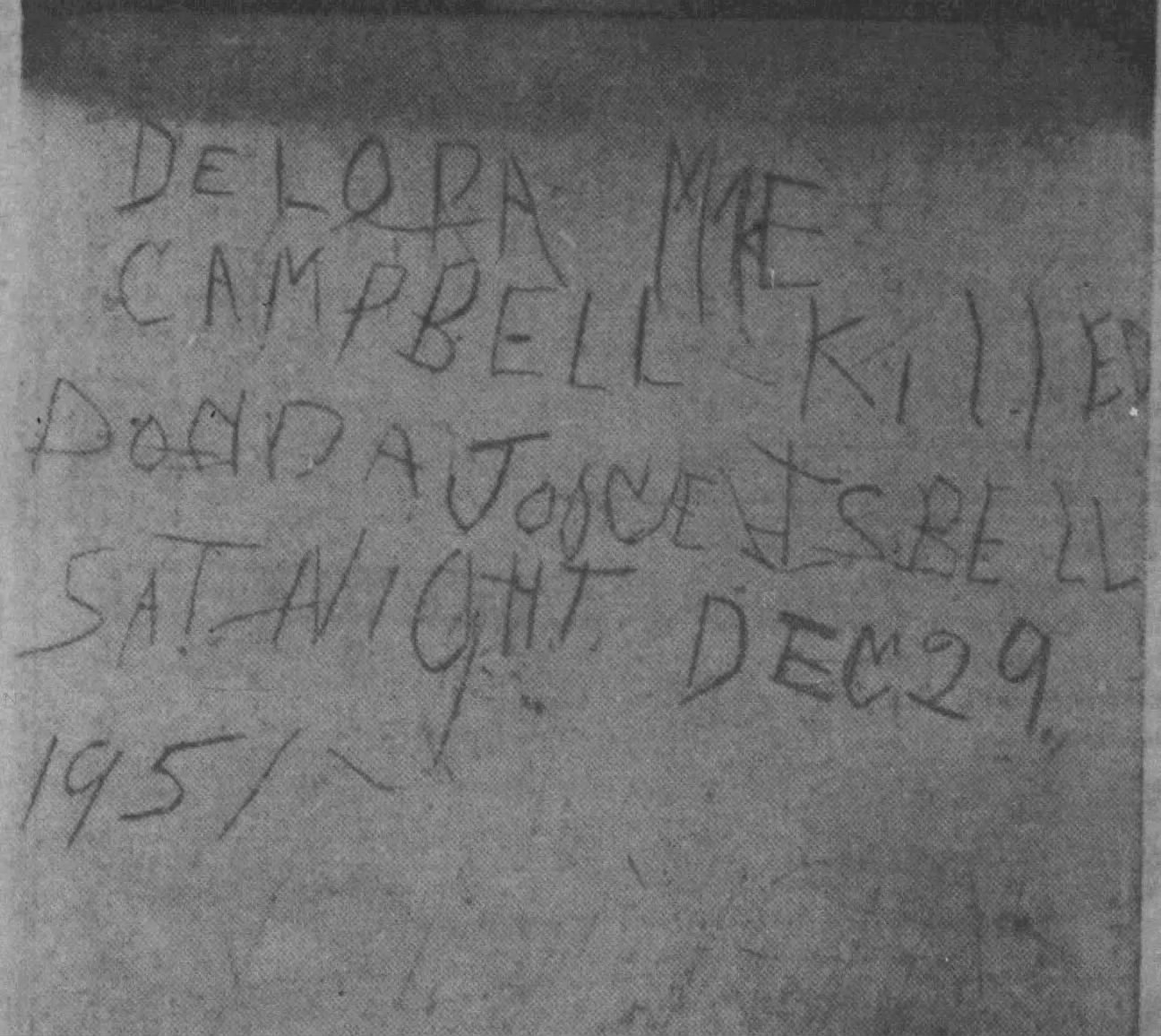 “DELORA MAE CAMPBELL KILLED DONNA JOYCE ISBELL SATURDAY NIGHT, DEC. 29, 1951.”